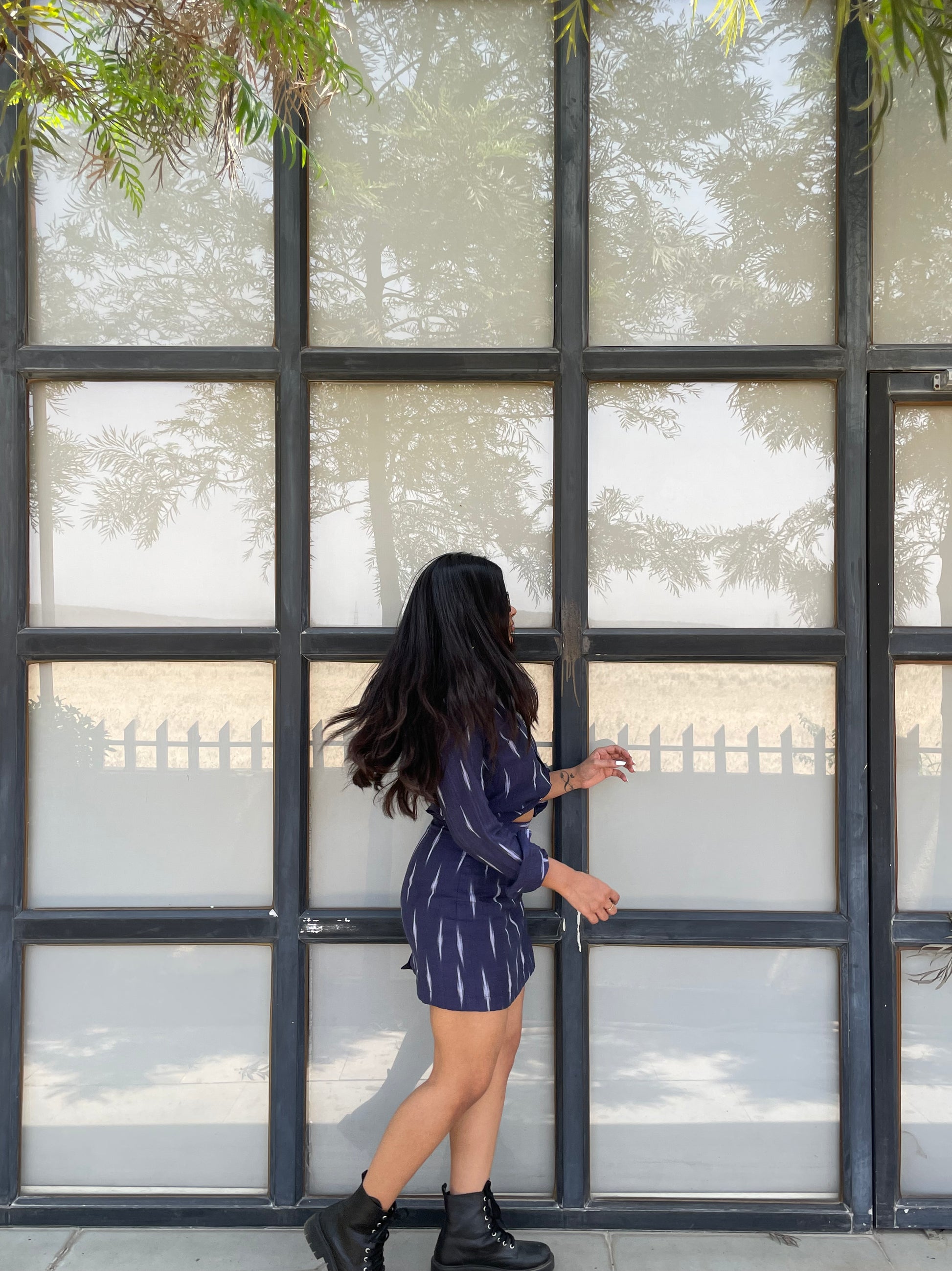 Crafted from sustainable organic cotton, this fitted button-down shirt is a timeless piece. Its versatile style allows for endless outfit possibilities. Pair it with tailored trousers for a polished look or dress it down with jeans for a casual vibe. This chic mini skirt offers a flattering fitted silhouette. A versatile piece that can be dressed up or down, it's a must-have for your wardrobe.