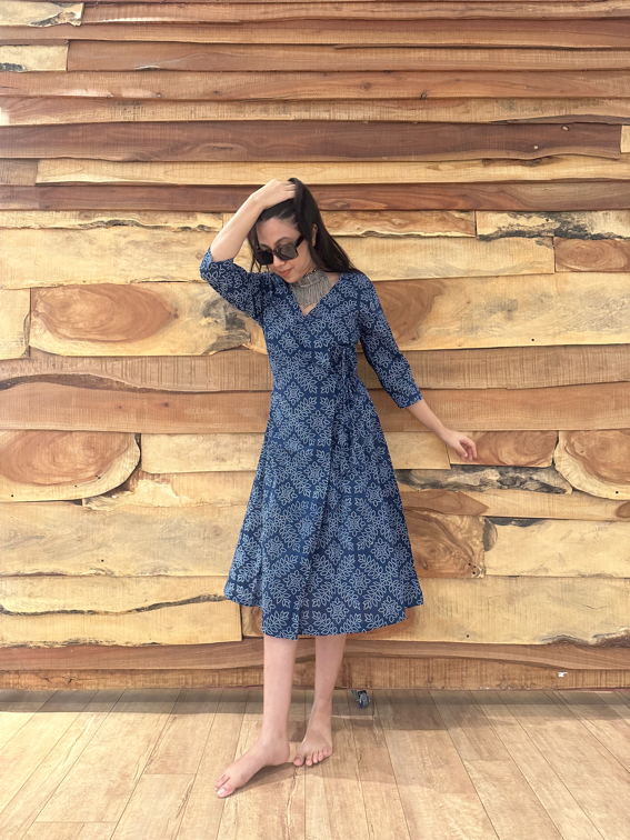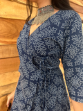 A timeless wrap design featuring a V-neckline, offers a customizable fit with its adjustable side tie. This tunic is perfect for any occasion, wear it to work by styling it with white pants for a modern Indo-Western look.