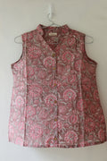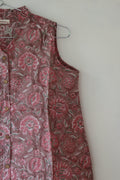 This cotton top, made using hand block printing techniques, features a relaxed sleeveless silhouette, v-neckline with front button detail.