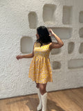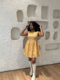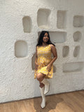 A playful mini dress with a gathered skirt adds a touch of whimsy to the feminine, sleeveless design featuring a flattering boat neckline and fitted bodice.